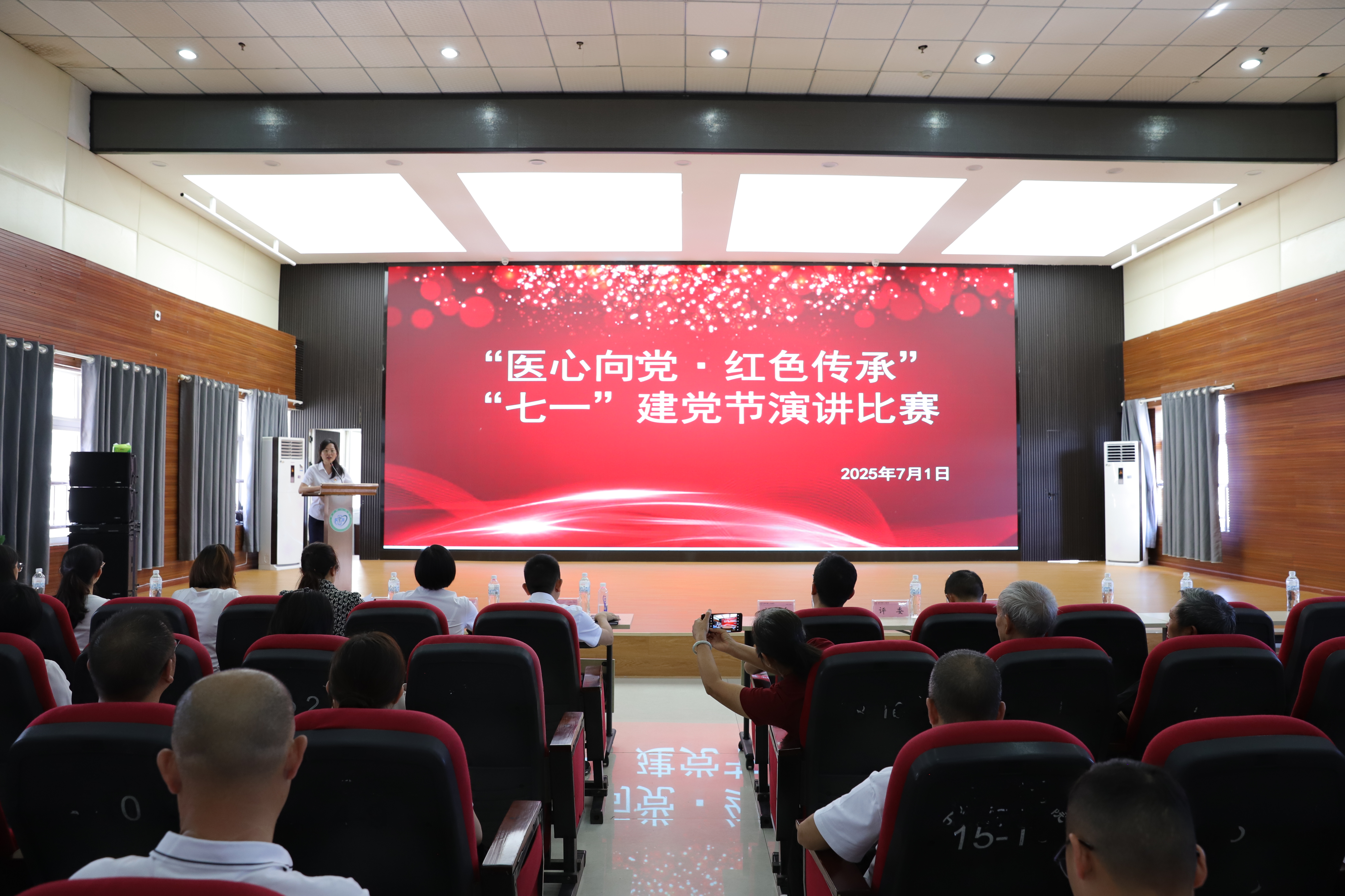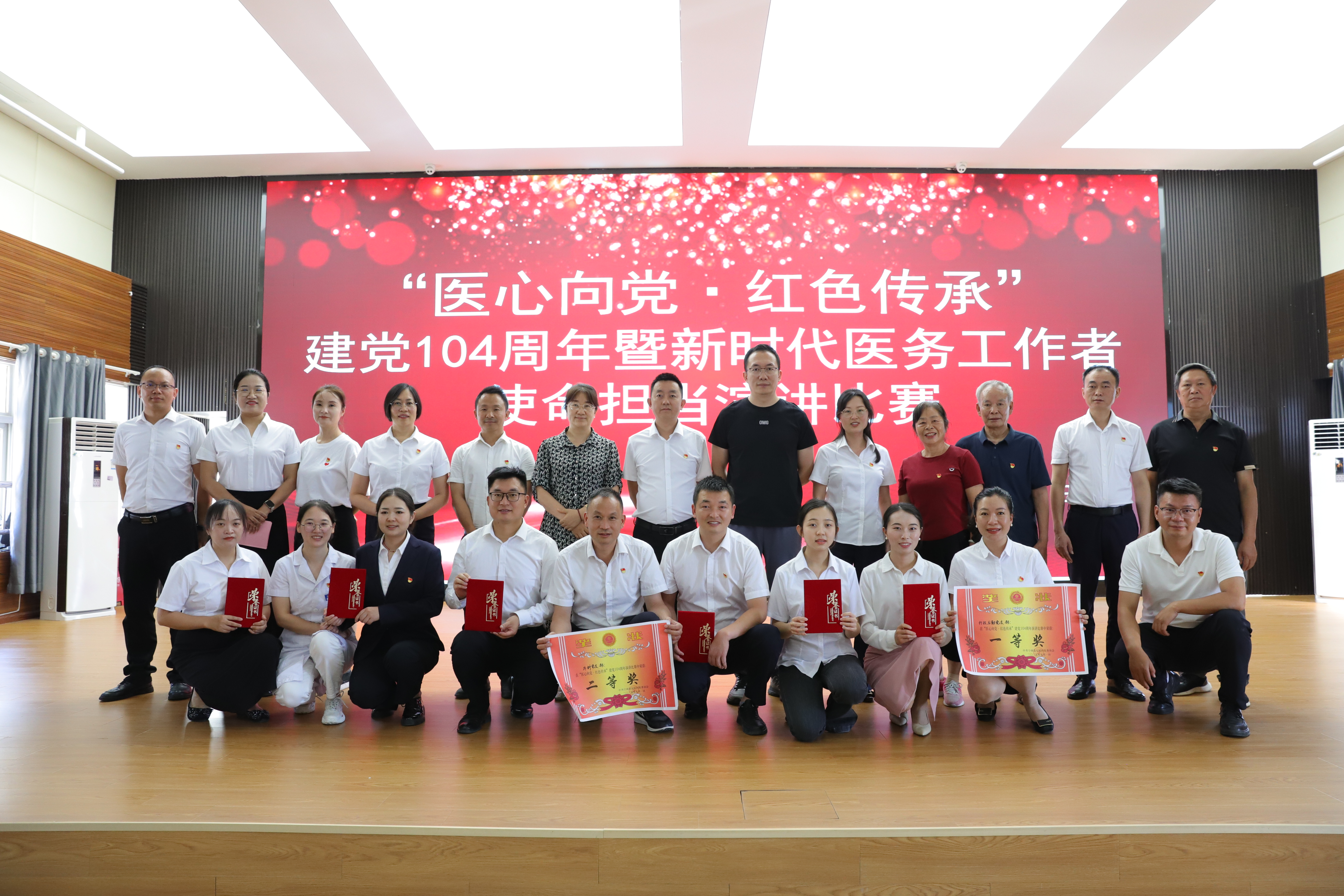 参观活动结束后,“医心向党・红色传承”——献礼建党104周年暨新时代医务工作者使命担当主题演讲比赛在医院学术报告厅拉开帷幕。来自各党支部的选手以声情并茂的讲述和掷地有声的誓言,为我们奉献了一场有温度、有力量的思想盛宴。从红色医疗史中白求恩精神的时代回响,到我院党员在抗疫一线“我是党员,我先上”的坚定身影;从科室党建与临床业务同频共振的创新实践,到新时代医务工作者对“健康中国”使命的深沉叩问……每一个故事都闪耀着“医心向党”的信仰光芒,每一段讲述都澎湃着“人民至上”的赤子情怀。这不仅是选手个人风采的展示,更是我院将党的政治优势转化为高质量发展动能的生动缩影,让我们真切感受到红色基因在新时代医疗实践中焕发的蓬勃生机!精彩的演讲引发了现场观众的强烈共鸣,赢得阵阵掌声。经过激烈角逐,比赛评选出了一、二、三等奖,并现场进行了表彰。